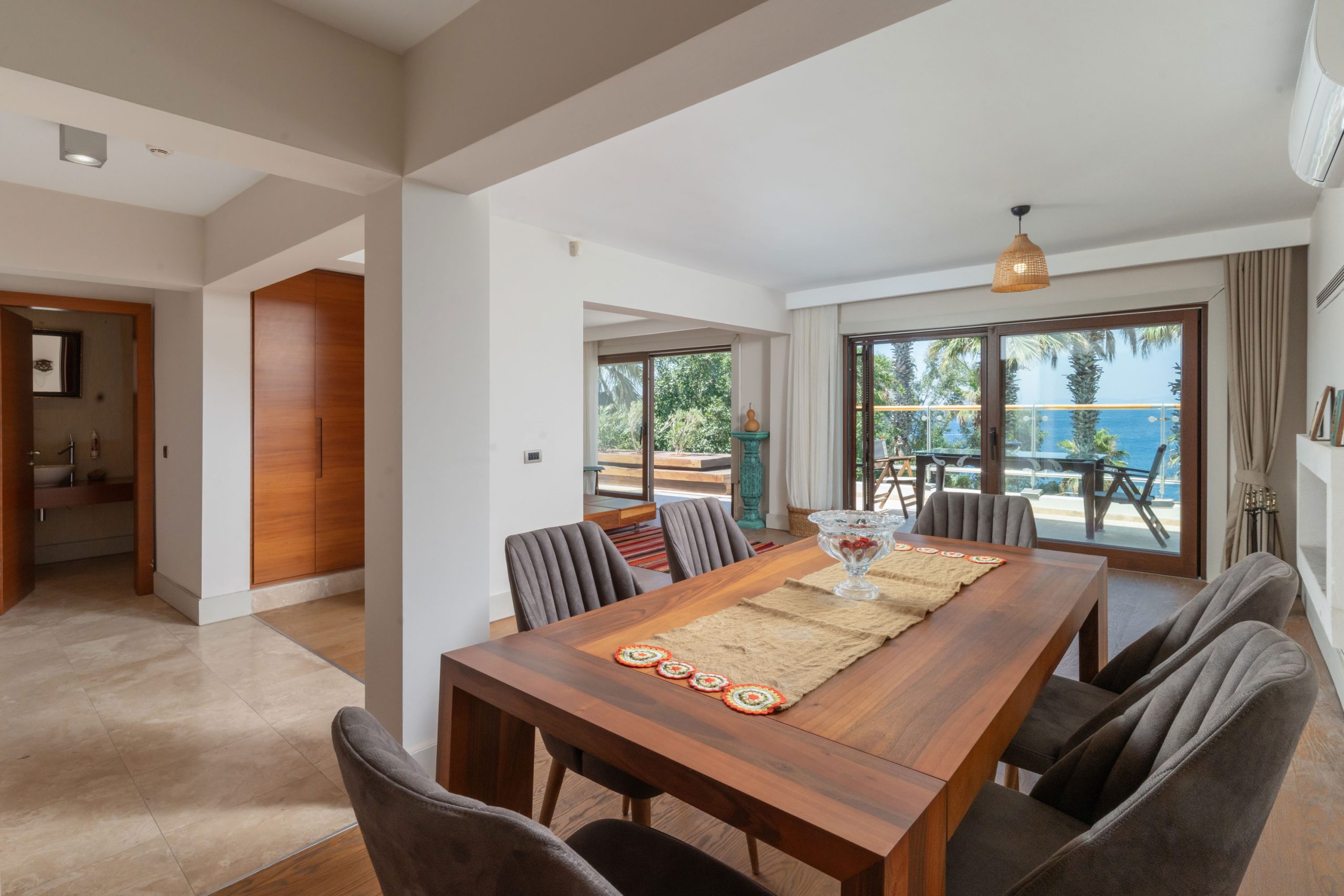 Bahçede, 50 metrekarelik özel havuzun berrak suları, gün batımında gökyüzünün renklerini yansıtırken ruhunu saracak. En üst kattaki ebeveyn süiti, king size yatağı ve nefes kesen manzaralı terasıyla, her sabah seni sihirli bir başlangıca uyandıracak. İkinci kattaki salonda ve masmavi denize bakan terasta, dalgaların melodisi eşliğinde sevdiklerinle paylaşacağın romantik, lezzet dolu ve neşeli anlar kalbine kazınacak.